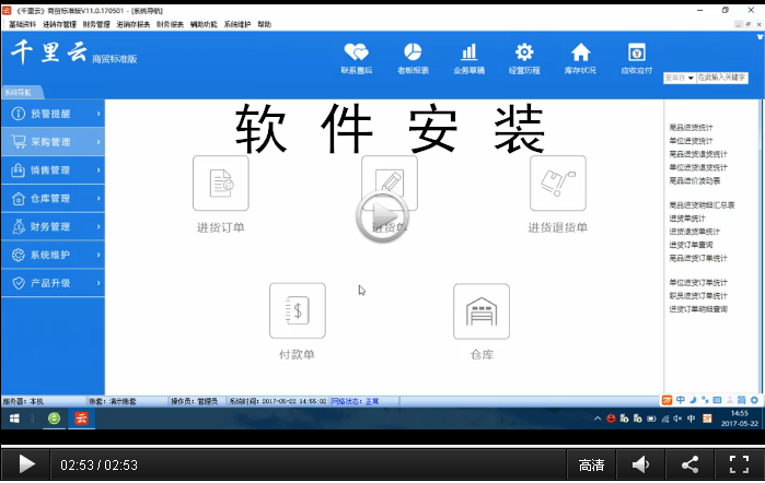 千里云軟件是以“實(shi)用(yong)(yong)、易(yi)用(yong)(yong)、好用(yong)(yong)”為核心(xin)理念設(she)計,管理采購、銷售、庫存(cun)及財務賬目。使用(yong)(yong)者只需錄入企業(ye)每天發生的各種業(ye)務單據,系統自動分類,匯總和(he)統計生成進銷存(cun)賬,庫存(cun)明(ming)細賬,往(wang)來(lai)應收應付(fu)賬,費用(yong)(yong)資(zi)金賬,年報,月報,日報等,查詢、統計和(he)分析快(kuai)捷方便。